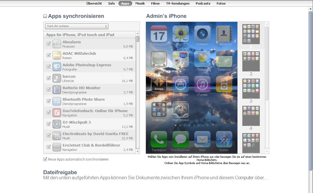 solange das kästchen APP Synchronisieren nicht aktiviert ist, werden vorhandene apps in ordnern (s. attachment), so wei ich sie angelegt hatte, angezeigt. sobald aber ich das kästchen aktiviere, zeigt das iTunes rechts ungeornete apps, also ohne von mir erstellte ordnerstuktur (s. attachment). heisst das, dass wenn ich jetzt mit aktiviertem APP SYN-Kästchen synchronisiere, meine ordner sich wieder auflösen?