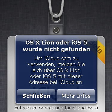@ fermion: Guck Dir Deinen Screenshot oben an. iCloud ist Bestandteil von OSX Lion & iOS5. Du musst es auf entsprechendem Device aktivieren, um es nutzen zu können.