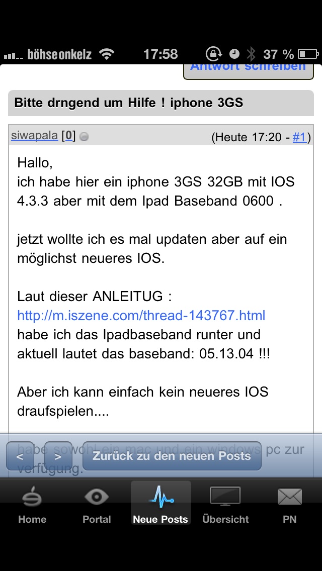 ich habe hier ein iphone 3GS 32GB mit iOS 4.3.3 aber mit dem Ipad Baseband 0600 .