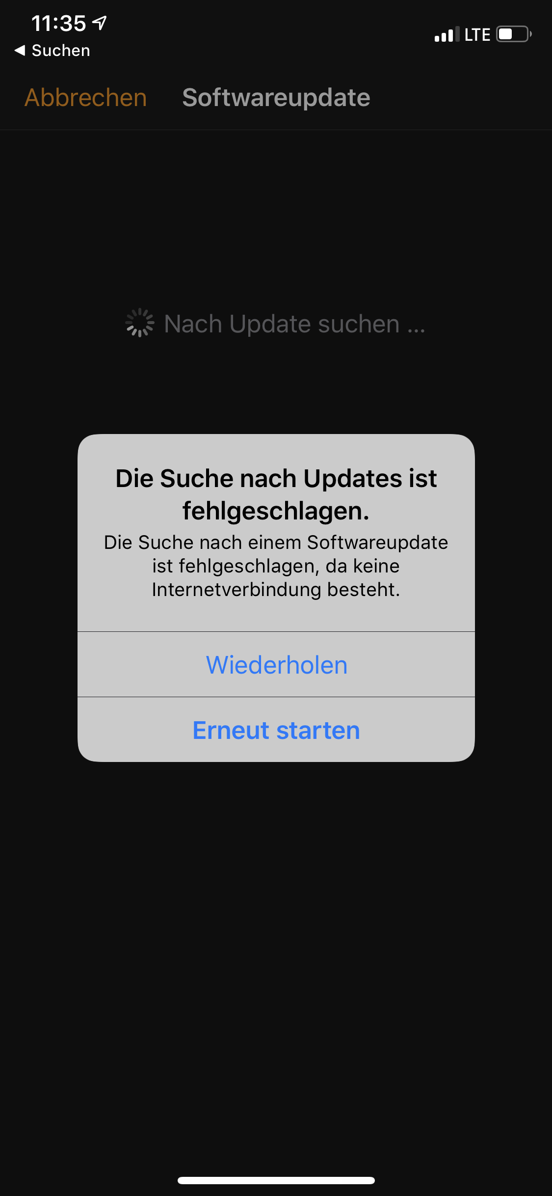 Jetzt kann ich sie jedoch nicht mehr mit dem iPhone koppeln. Es kommt immer nur der Punkt "Watch muss aktualisiert werden" und dann wieder "Suche nach Update fehlgeschlagen" - und sie wird wieder entkoppelt...