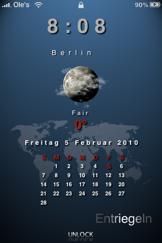 (07.02.2010, 20:19)ruedi04 schrieb:(07.02.2010, 19:30)easyrider schrieb: Wo kann ich bei dem Locktheme Red meine Stadt ändern? Finde unter der Weather config nur das hier: