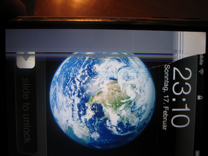 <edit> also ich würde an deiner stelle eh erstmal alles zerlegen und schauen vielleicht sitzt auch nur das lcd ribbon kabel nicht richtig drauf.. </edit>