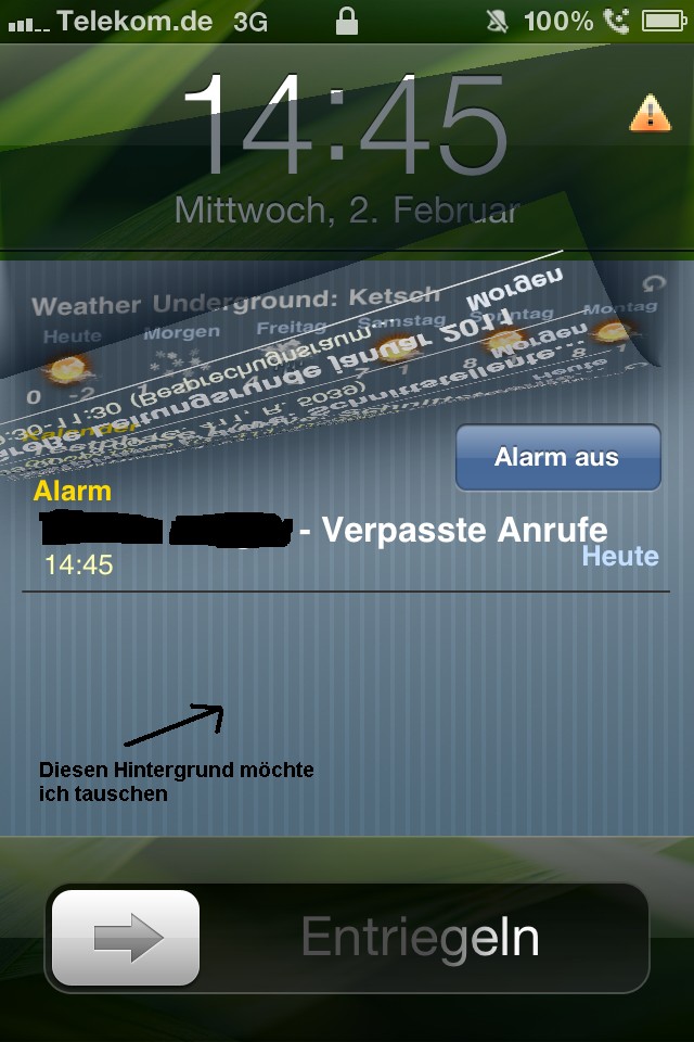 Wie kann ich den Hintergrund der Alarmanzeige (bzw. Terminanzeigeerinnerung) ändern (siehe Bild)?