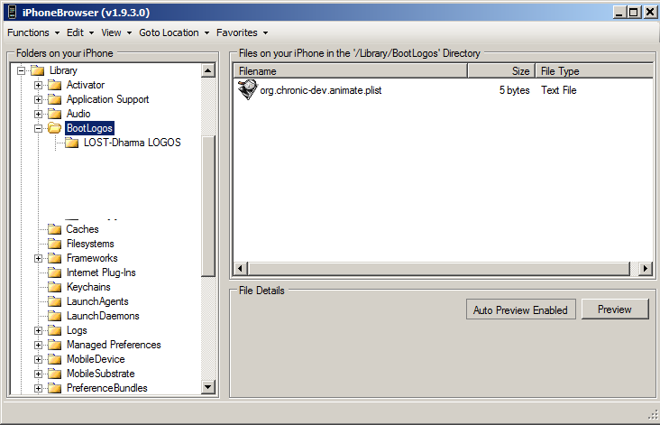 i-Ding per USB verbinden, iPhoneBrowser starten und in das Verzeichniss Library/BootLogos wechseln.