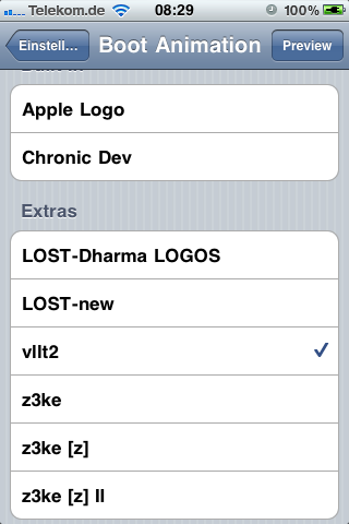 Auf dem iPhone/iPod in Einstellungen gehen und nach unten zu [(TotenApfel) BootLogos].
