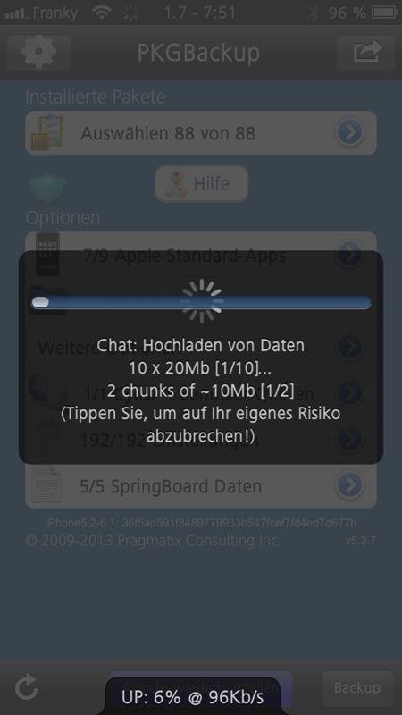 PKGBackup läuft auf dem 5er meines Freundes perfekt und läd gerade ein komplettes Backup in die Dropbox