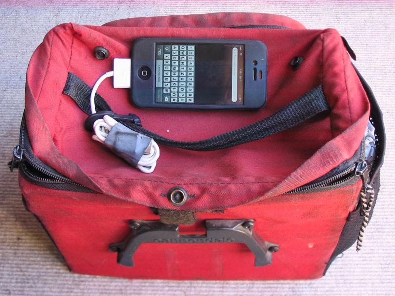Da ich bereits eine (Cannondale-)Lenkertasche besitze, habe ich diese so präpariert, dass sie als Halter für das iPhone taugt.