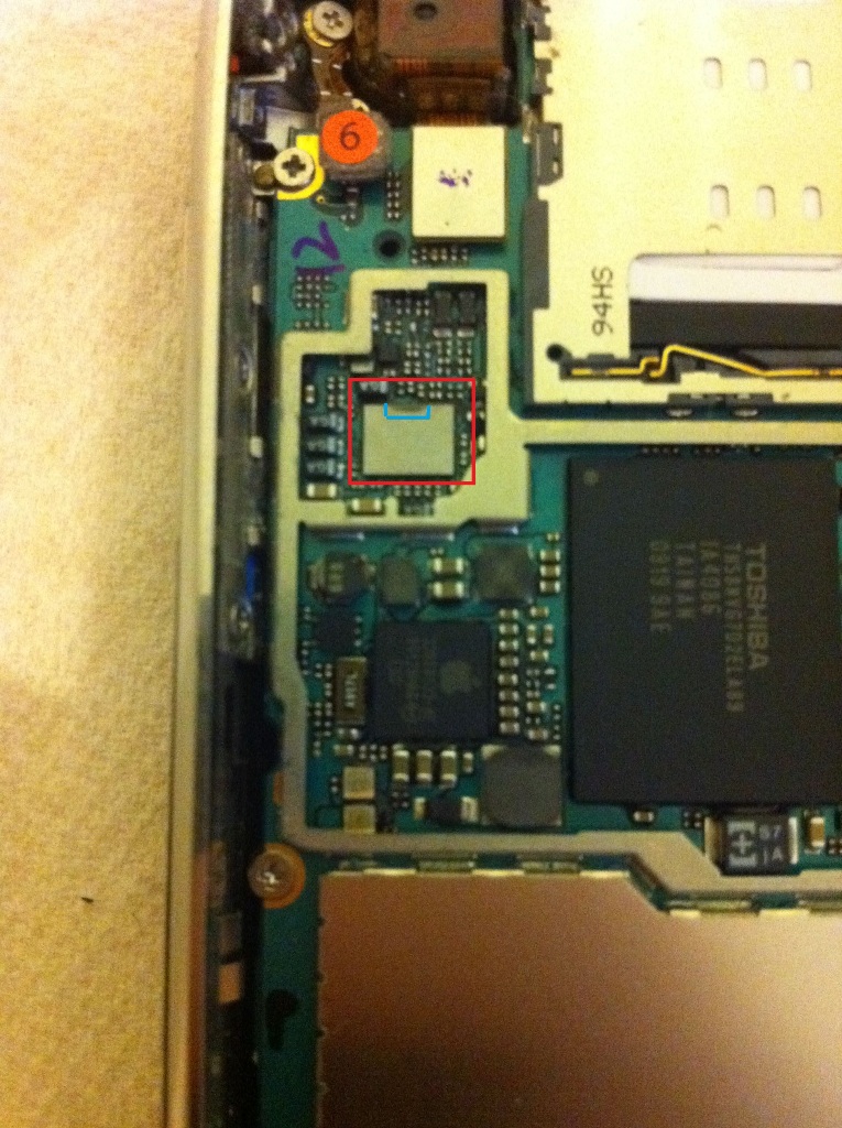 Allerdings merke ich das an dem Logic Board an einer bestimmten Stelle es heiß wird wenn das Display angeschlossen ist. Das passiert ziemlich flott. Das ist an der Stelle wo scheinbar dieses Bauteil verbaut ist wo das Backlight ansteuert, aber ich glaube das liegt daran dass das evtl. defekte Kabel ein Kurzschluss verursacht.