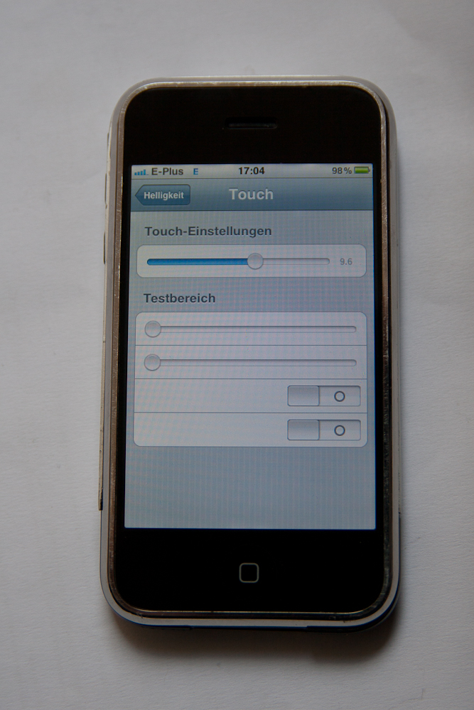 Edit: Hier mal ein Foto dieser Toucheinstellungen. Was genau stellt man da normalerweise ein? Ist ja unter "Helligkeit" eingeordnet ...