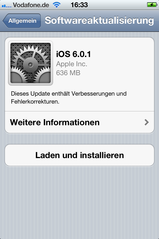 also bin ich auf Software Aktualisierung gegangen und mein Iphone 4s mit iOS 5.0.1 (9A406) jailbreaked, lädt automatisch!!! auf iOS 6.0.1 :O