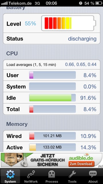 Ich habe es ausgeschaltet (lange Standbyknopf betätigt) und einmal neugestartet (Homebutton+Standbyknopf). Keine Veränderung. Der Akkus geht so in die Knie. Habe es jetzt auch mal ne halbe Stunde ausgeschaltet. Nach dem Einschalten geht der Akku weiter in die Knie. Habe nun noch 30 %. IP habe ich wieder aus, sonst ist es eh in einer halben Stunde leer.