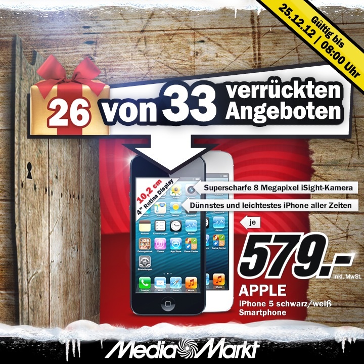 @Iphone-Jeff Ich hoffe, Deine Beiträge waren ironisch gemeint, ansonsten hast Du den Sinn von Werbeaktionen nicht verstanden. Bei RTL 89.0 gab es das iPhone 5 vor Wochen mal einen Tag lang für 89 Cent - das hatte aber nichts damit zu tun, dass es sonst niemand gekauft hätte Bei solchen Aktionen geht es um Werbung für die verkaufende Firma, da werden natürlich nur Produkte genommen die reißenden Absatz finden. Das iPhone 5 wird noch immer schneller verkauft als es produziert werden kann und ist das mit Abstand bestverkaufte iPhone aller Zeiten. Daher ist Dein Komentar irgendwie recht unverständlich, oder Du hattest einfach schon zu tief in den Punsch geschaut. :Lol: Ich denke inzwischen wirst Du es aber auch richtig verstanden haben