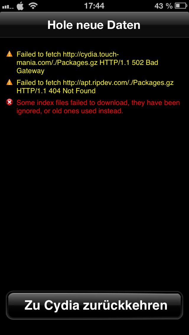 Touch-Mania und die apt.ripdev Quellen einen Fehler verursachen?