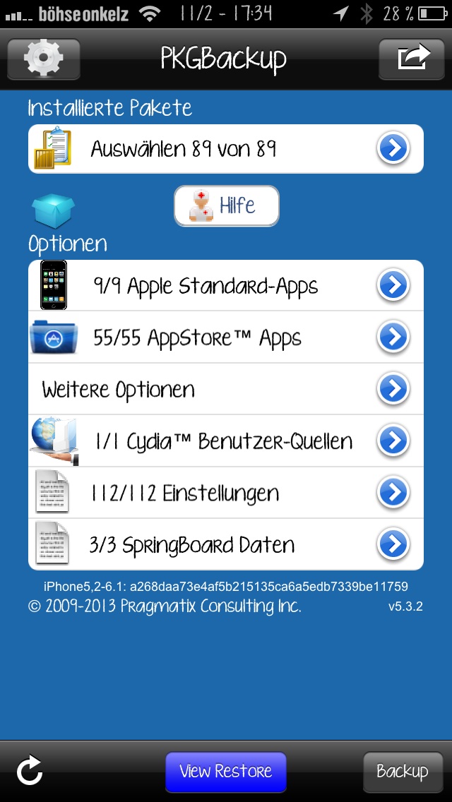 Somit, vermute ich läuft PKGB. unter iOs6 und JB nicht sauber. Ich lasse in Zukunft - zumindest im Moment - die Finger davon und spiele manuell wieder auf.