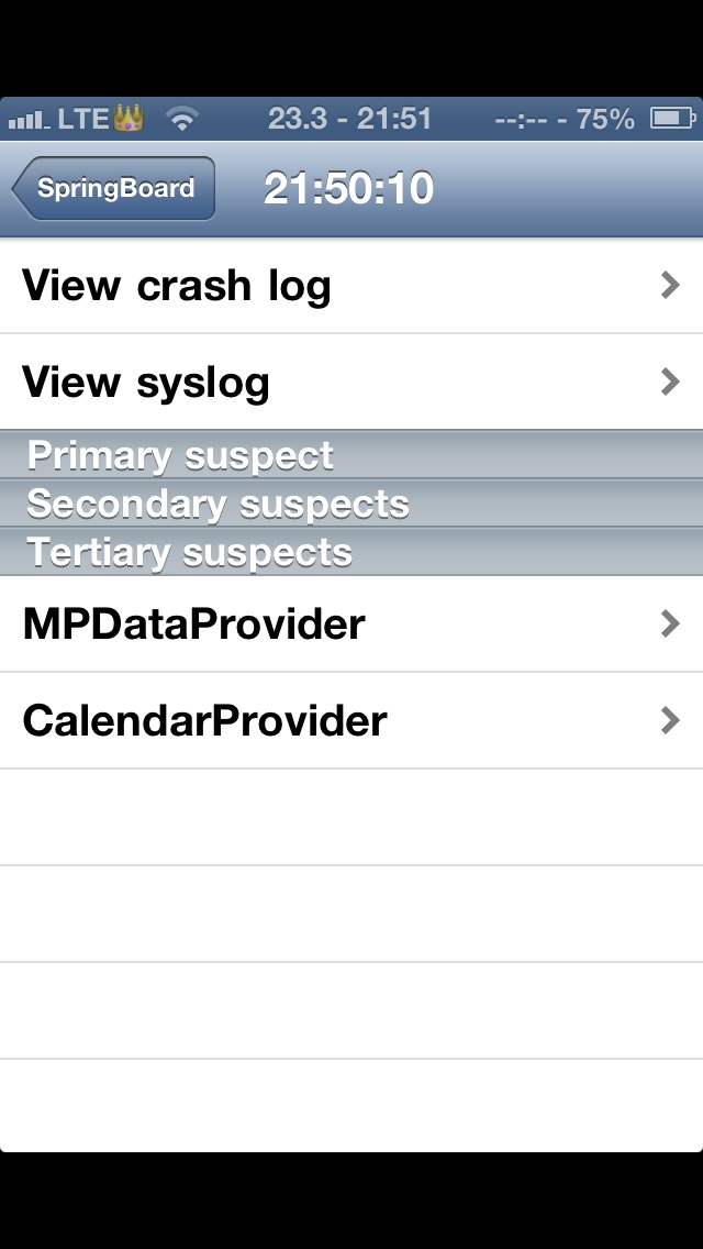 hallo ich habe folgendes problem: hatte auf meine iphone5 mit 6.1 jb gemacht und es ist öfter mal passiert das wenn ich das nc runterziehen das iphone einfach so respring gemacht hat und sich in den safe mode gesetzt hat. so dann habe ich das iphone komplett neu gemacht mit 6.1.2 dann auch wieder jb etc und wieder das gleiche problem. hab im nc nur sbs batteryinformation und wetter.