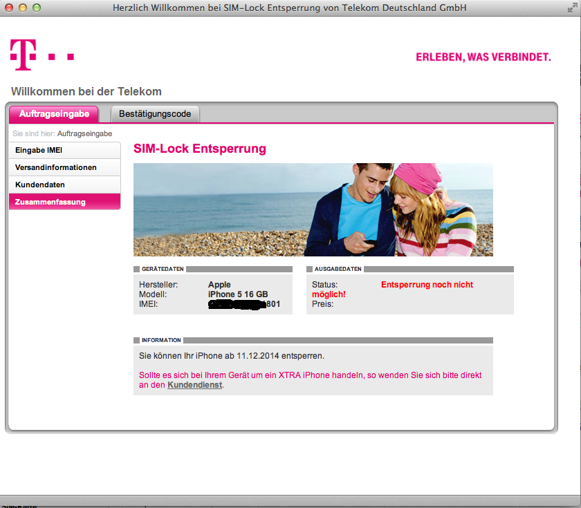 Habe mal unter Telekom iPhone freischalten reingeschaut, ein bisschen komisch ist es schon. Beim ersten mal stand das das iPhone am 01.02.2015 entsperrt werden kann und beim zweiten mal 11.12.2014 entsperrt werden kann ???