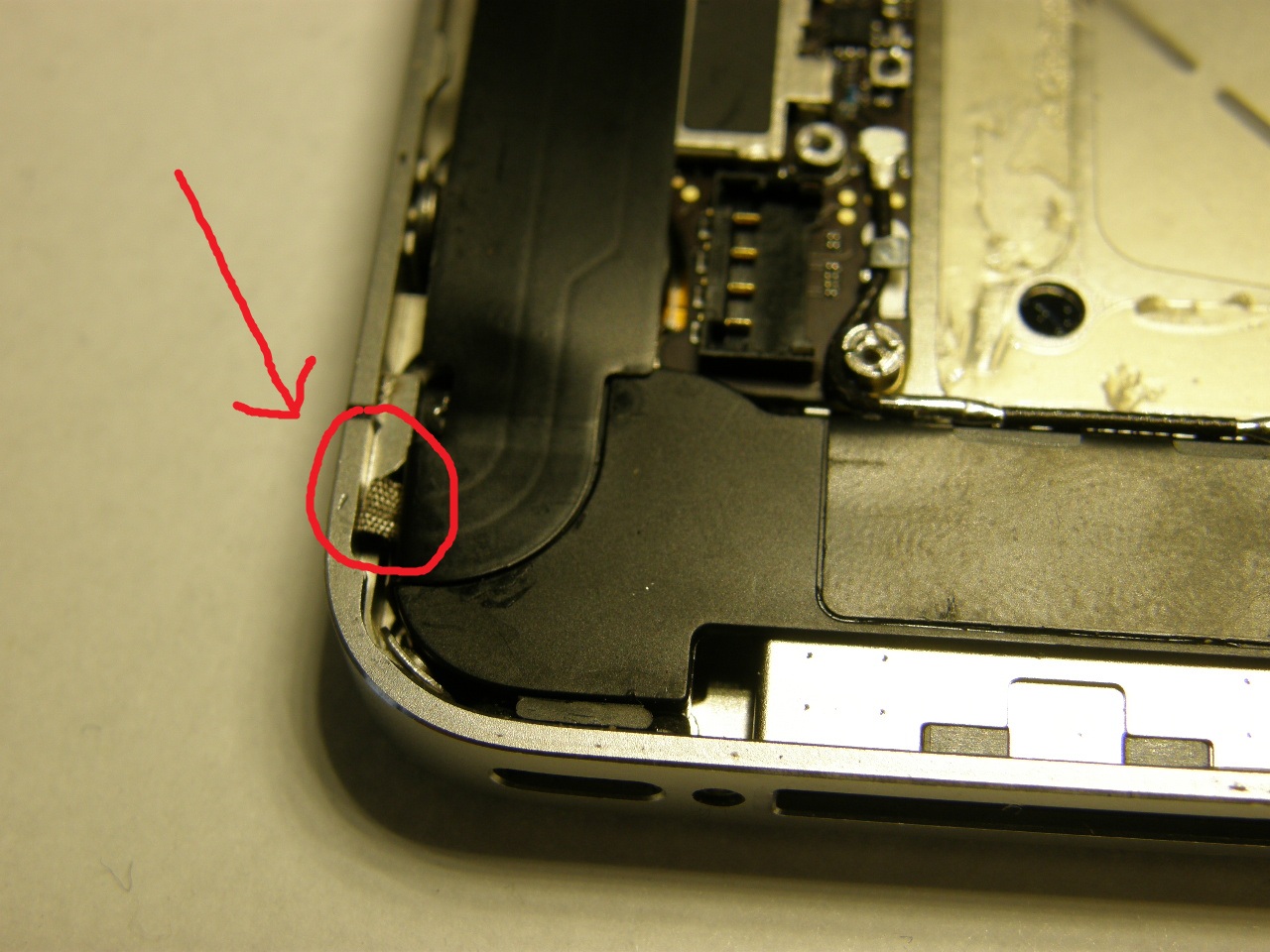 Bin nicht unerfahren, was das zerlegen von iPhones angeht und passe auch immer gut auf. Die blaue Spule bei der Antenne ist noch vorhanden.