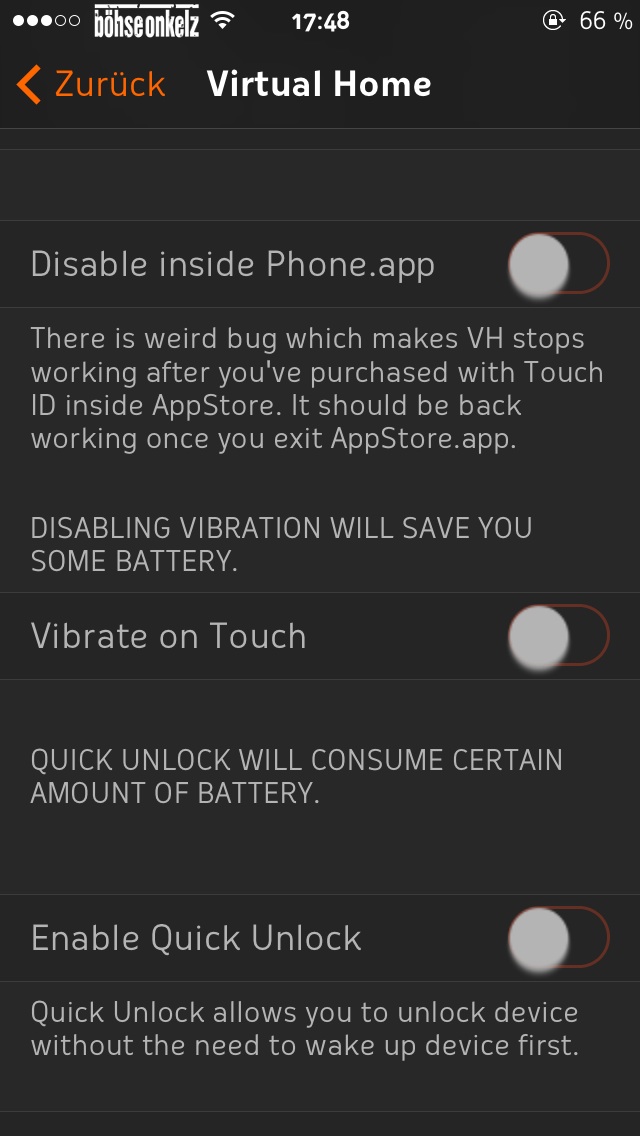 Hat noch jemand das Problem mit Virtual Home das trotz ausgeschaltetem "Enable Quick Unlock" sich nach einiger Zeit das iphone trotzdem ent perren lässt wenn das display aus ist?