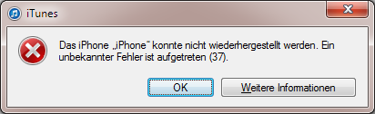 Beim Versuch, ein quasi totes iPhone 3GS wieder in den Fabrikzustand zu versetzen, tritt bei iTunes, etwa bei 2/3 (so der Fortschrittsbalken auf dem iPhone) in der Phase "iPhone Firmware wiederherstellen" ein Fehler auf.