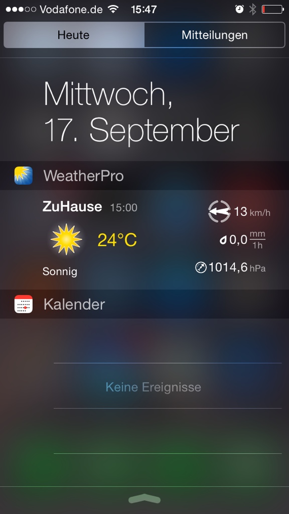 So das nächste Update ist da WeatherPro mit Widget. Perfekt so habe ich jetzt meine Netatmo Station im Notification Center.