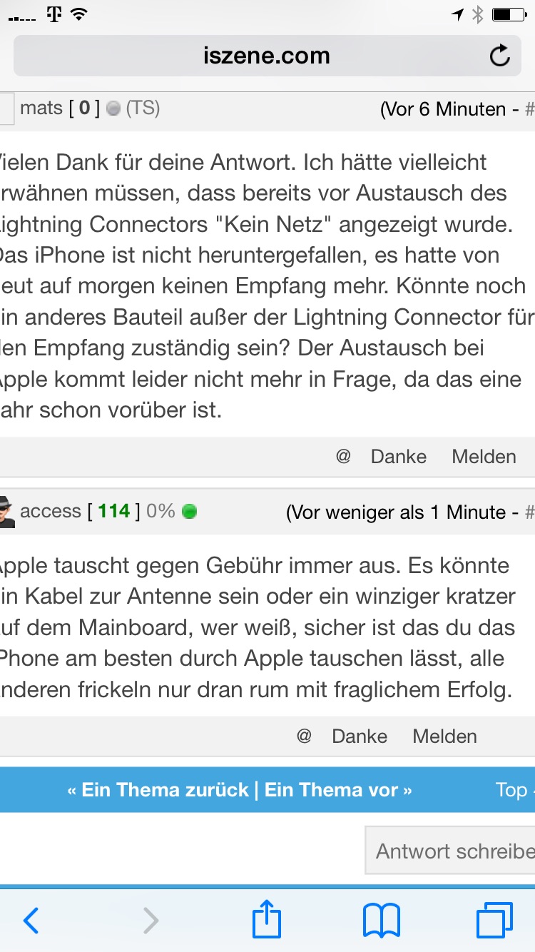Ach ja, den Edit Knopf und Zitat ist bei mir immer noch nicht sichtbar wie man sieht. Das ist aber schon länger so. Bin mit Safari auf iOS 8.1 unterwegs keine Browsertweaks, nur eine geänderte Hosts Datei.