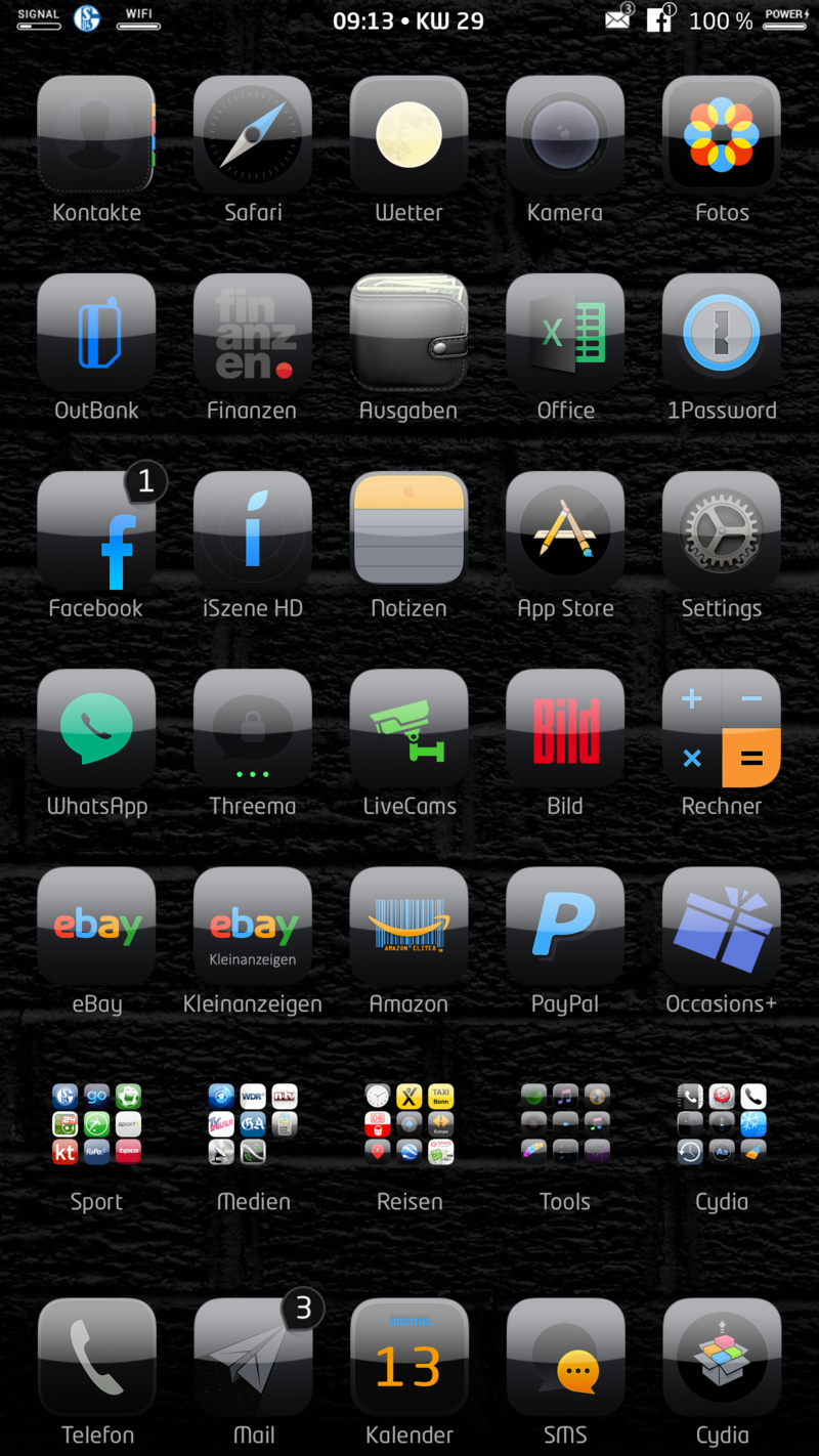 Für das erste schon mal mein Grund Paket der gethemten Menu's und des Springboards. Jetzt geht es weiter an die Feinheiten. Dazu fehlt leider immer noch der Tweak CustomFolderIcons.