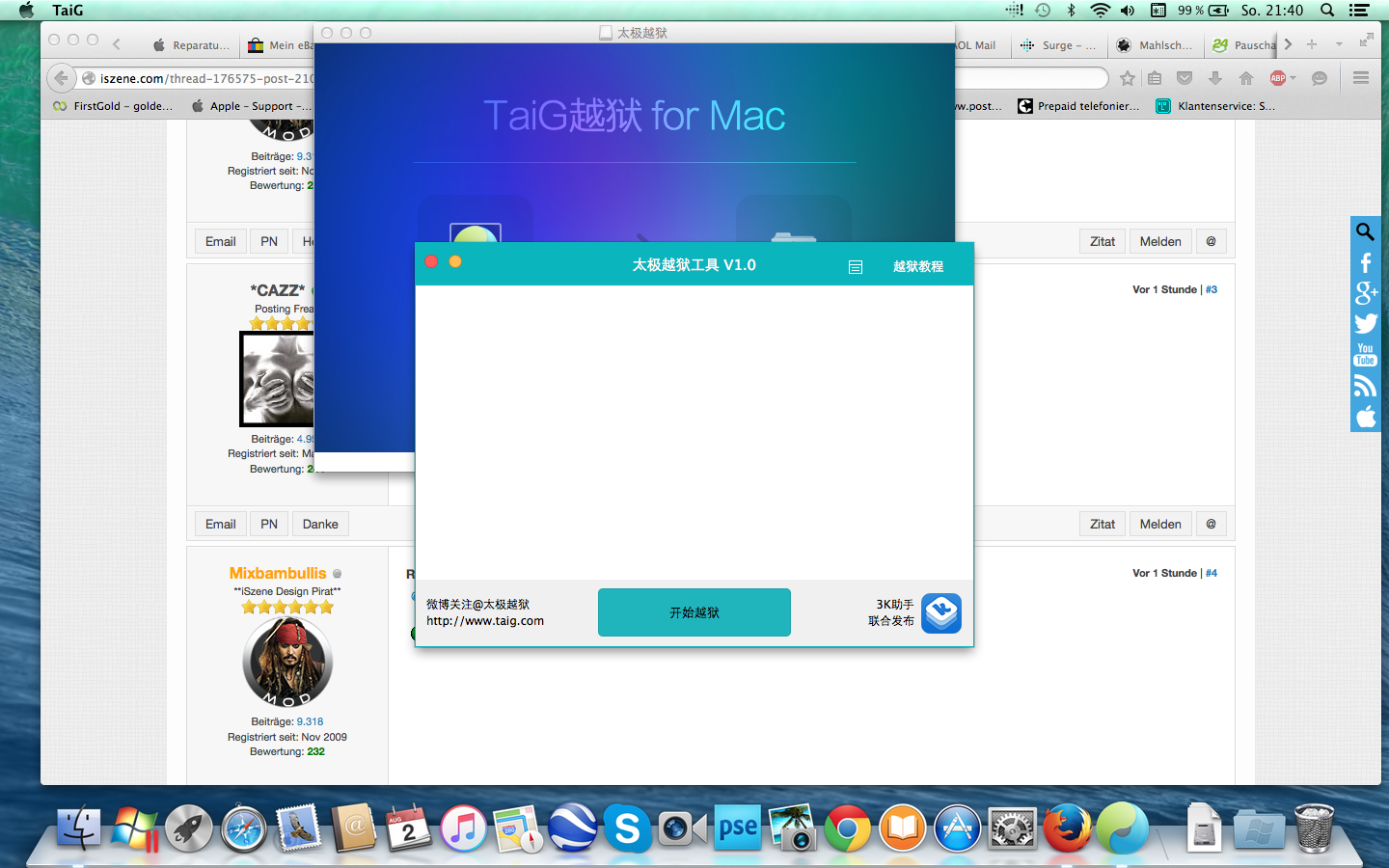 habe soeben den Jailbreak auf meinem Iphone 5s mit dem Macbook vollzogen