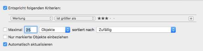 Und meine Lieblingstitel ist ja eine intelligente Wiedergabeliste die nur die Favoriten berücksichtigt.