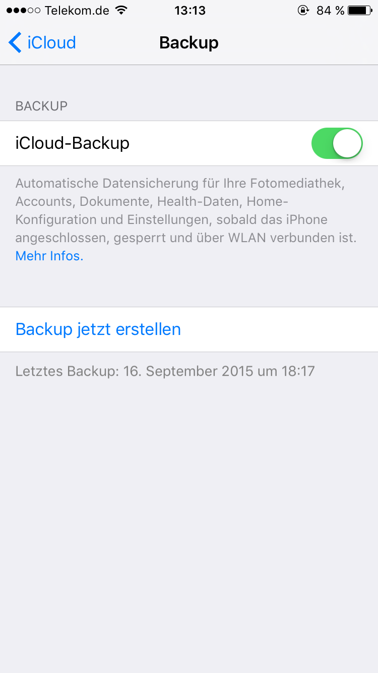 ich habe bisher unter iOS 8 immer ein iCloud Backup von meinen Einstellungen und ein paar ausgewählten Apps gemacht. Das Backup hat nie die 200MB überschritten (Fotos habe ich deaktiviert). Seit dem Update auf iOS 9 kann ich nun kein Backup mehr machen. Ich bekomme immer die Fehlermeldung "Not Enough Storage This iPhone cannot be backed up because there is not enough iCloud storage available" Kann aber nicht sein da ich die vollen 5GB zur verfügung habe. Im Anhang habe ich mal ein paar Screenshots hoch geladen. Kann mir wer sagen was hier falsch eingestellt ist? Ich sehe keinen Fehler und habe auch nie etwas verändert...