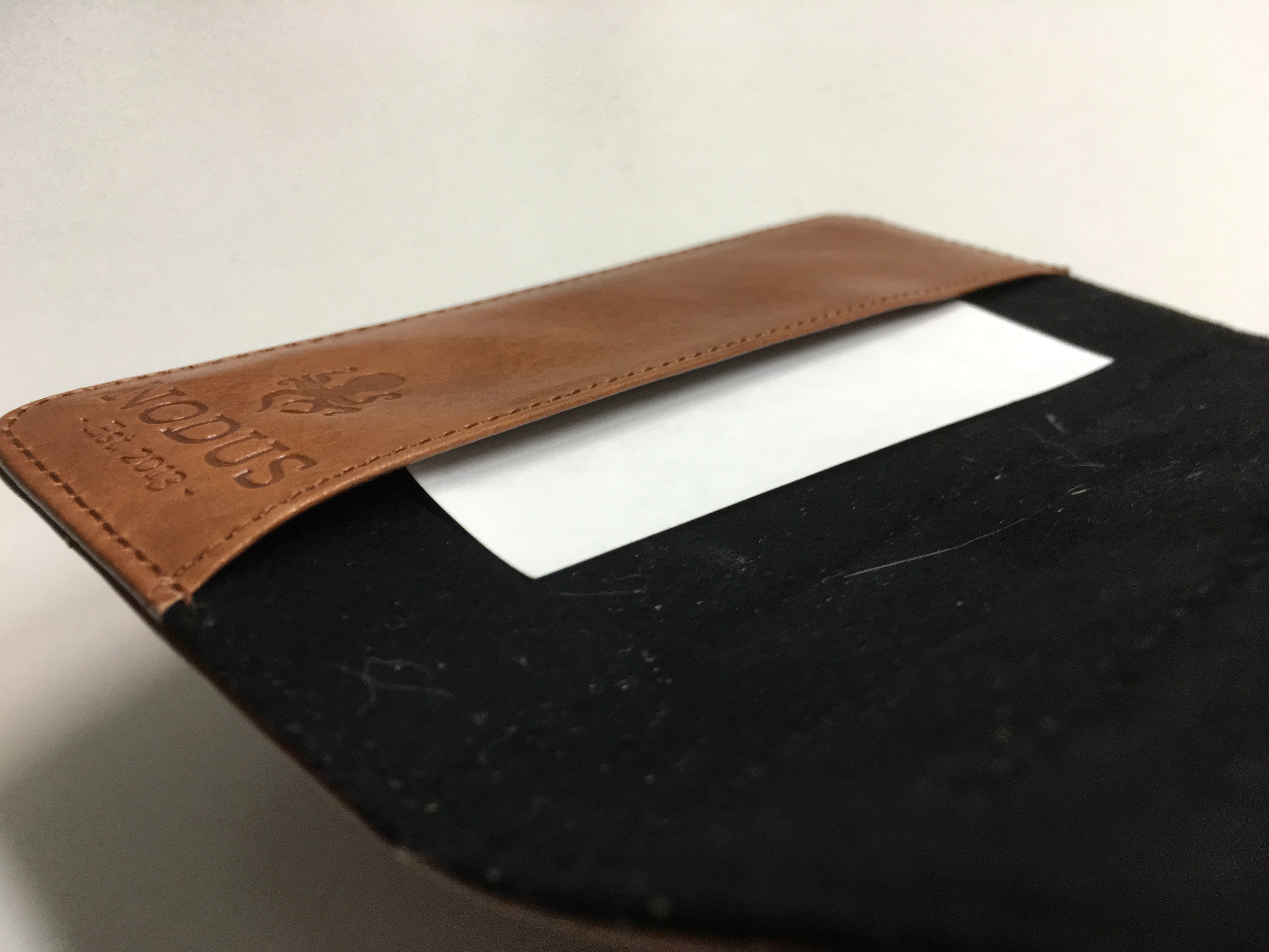 Leider komme ich nun zum Hauptkritikpunkt an diesem Case, weshalb ich es auch nicht mehr nutze. Das Fach für Geldscheine und Kreditkarten ist zum Einen recht schmal, zum Anderen gibt das Leder stark nach, so das die Karten und das Geld relativ leicht herausfallen können. Mir ist es im Laden schon passiert das mir beim Öffnen des Cases alles heraus fiel und auf dem Boden landete. Kann ja mal passieren, aber was macht man wenn nur eine Karte herausfällt, wenn man des Nachts die Zimmerkarte am Hotelbungalow herausnimmt. Ziemlicher Mist. Hier ein Foto, dass verdeutlicht wie stark das Leder ausleiert.
