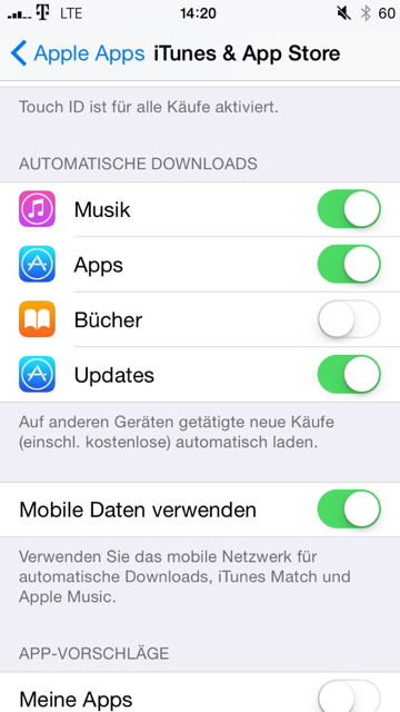 Schau Dir mal noch die Einstellungen zur Musik-App genauer an (nicht unterhalb von Mobile Daten sondern direkt in den Einstellungen)