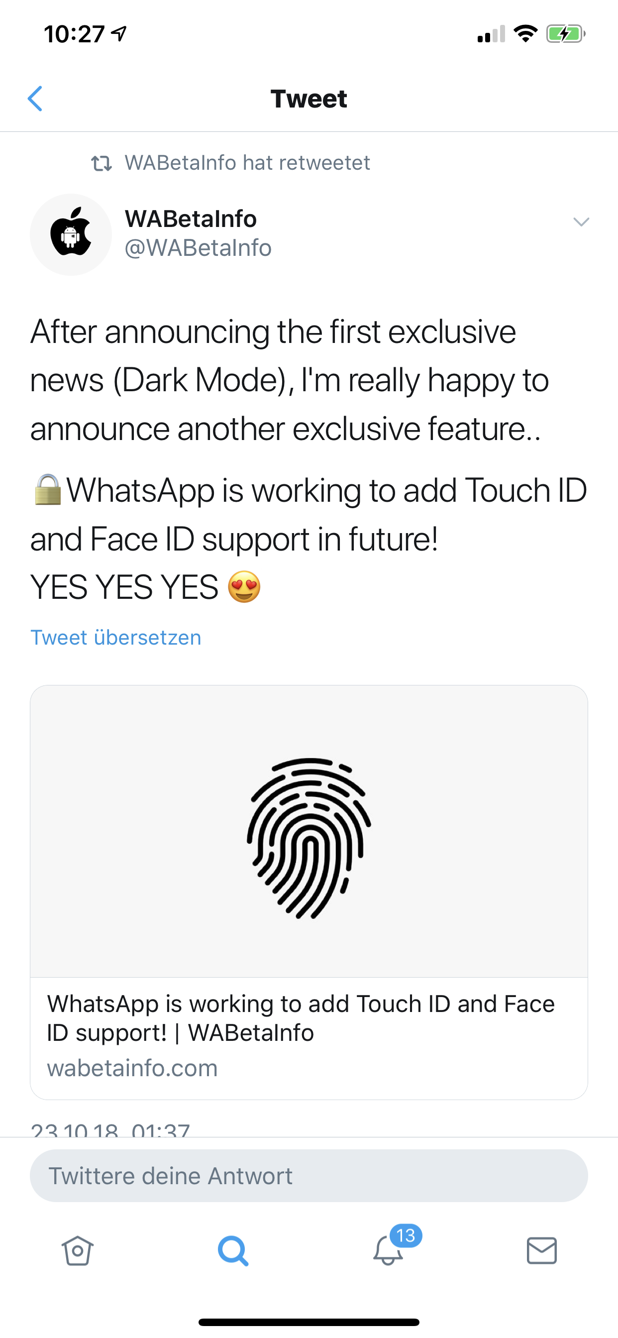 WhatsApp arbeitet derzeit an einem Darmode als auch an der Entsperrung via TouchID und FaceID. In der aktuellen WhatsApp Beta ist bezüglich Darkmode aber noch nichts sichtbar.