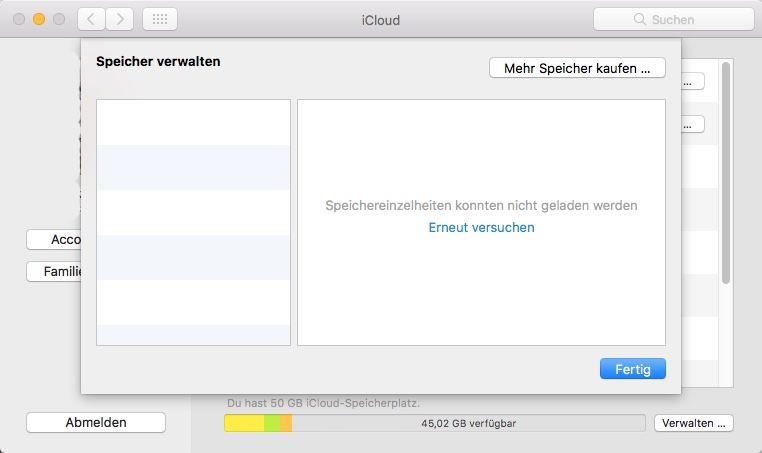 ich kann weder am iMac, noch am MacBook, iPhone oder iPad auf den iCloud-Speicher zugreifen...