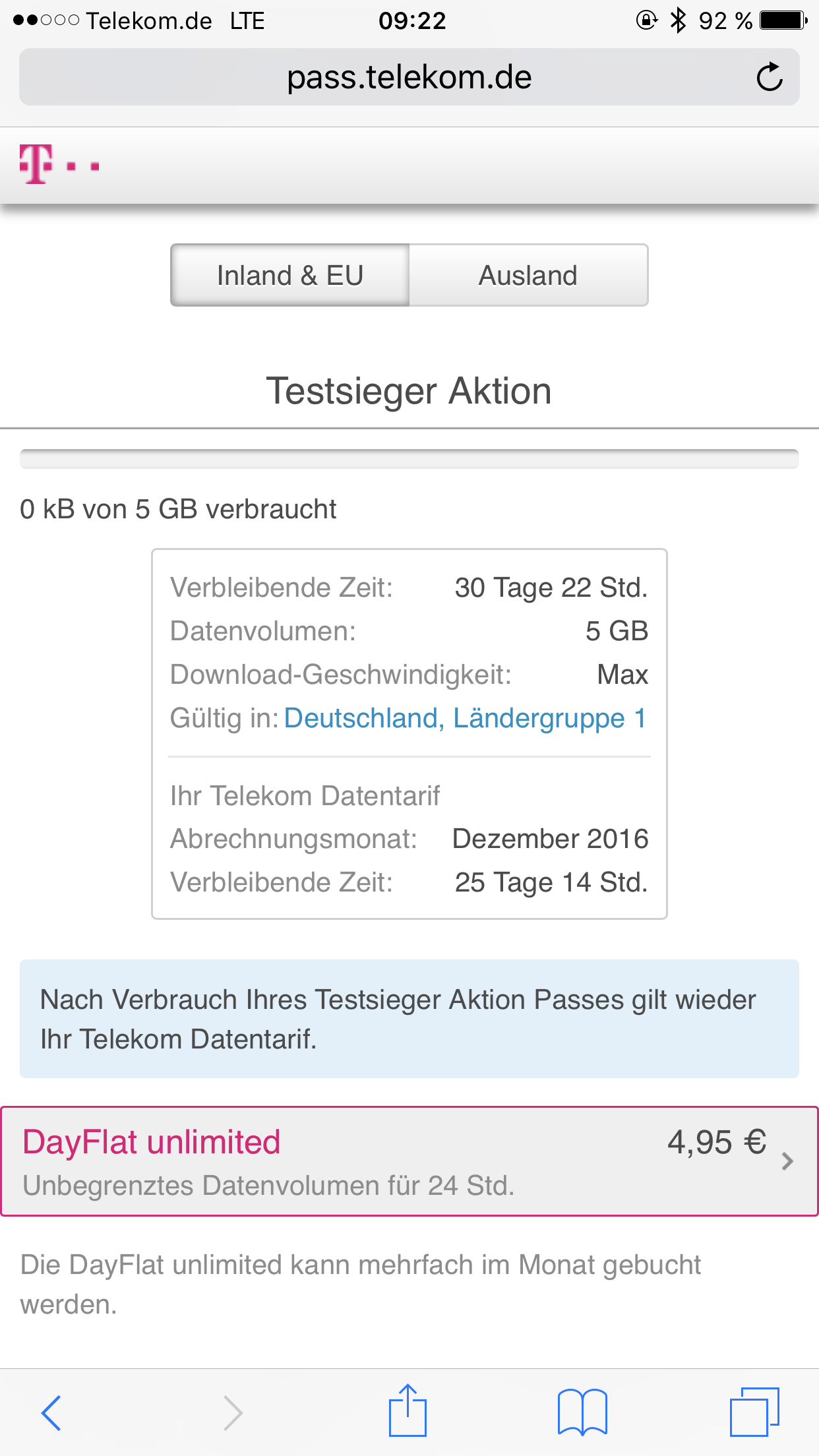 Nun habt ihr für den Rest des Dezembers 5GB extra Datenvolumen gebucht. Eine Bestätigungs-SMS der Telekom sollte folgen.