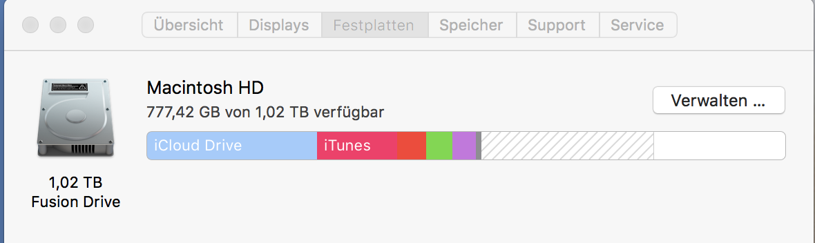 Wenn ich auf die Verfügbarkeit unter Festplatte schauen, steht da 776 GB von 1TB verfügbar.
