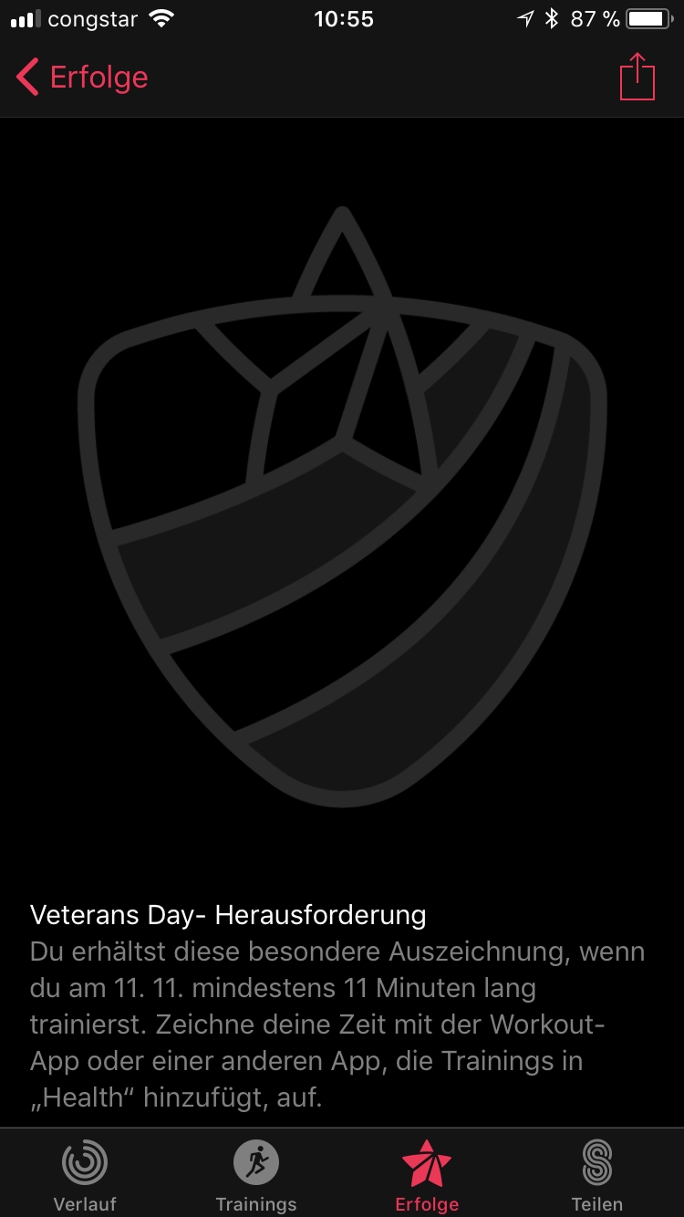 In den USA ist am Samstag Veterans Day. Wenn Ihr in der Watch App unter "Allgemein" -> "Sprache & Region" -> "Region" auf Vereinigte Staaten umstellt, bekommt Ihr in der Aktivität App die neue Herausforderung schon heute angezeigt.