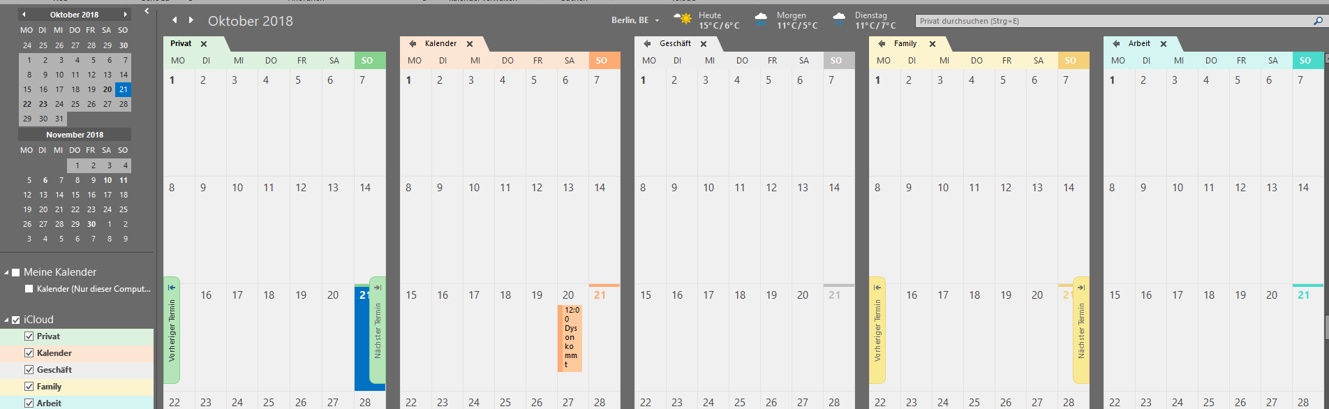 Ich habe mir iCloud für Windows installiert um meinen Kalender mit Oulook 2016 abzugleichen. Mir wird aber nur der Kalender angezeigt zur meiner Main Mail Adresse. Wenn ich auf Kalender klicke sehe ich "Meine Kalender" und den "iCloud Kalender" /Privat/Kalender/Geschäft/Family/Arbeit warum auch immer diese Unterordner da sind. Im Mail Programm habe ich es so eingestellt das rechts in einer Leiste der Kalender angezeigt wird. Aber wie bekomme ich es hin das mir auch die Termine aus dem iCloud Kalender angezeigt werden? Im Internet findet man auch nichts weiter. Das einzige was ich gefunden habe war was mit "olmixedfolders" dazu finde ich nur eine exe datei aber ich bin mir damit unsicher. Hat damit jemand Erfahrung wie das funktioniert?