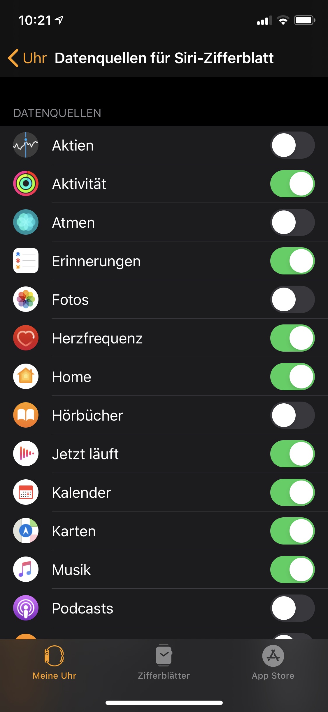 Also sind die Optionen auf der Watch unter Einstellungen - Uhr - Datenquellen für Siri-Zifferblatt verschwunden?