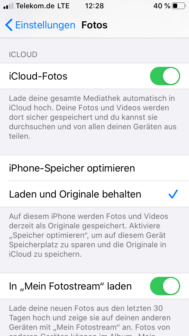 Ich habe das Problem, dass meine Bilder aus der iCloud nicht aufs Handy zurückgeladen werden.