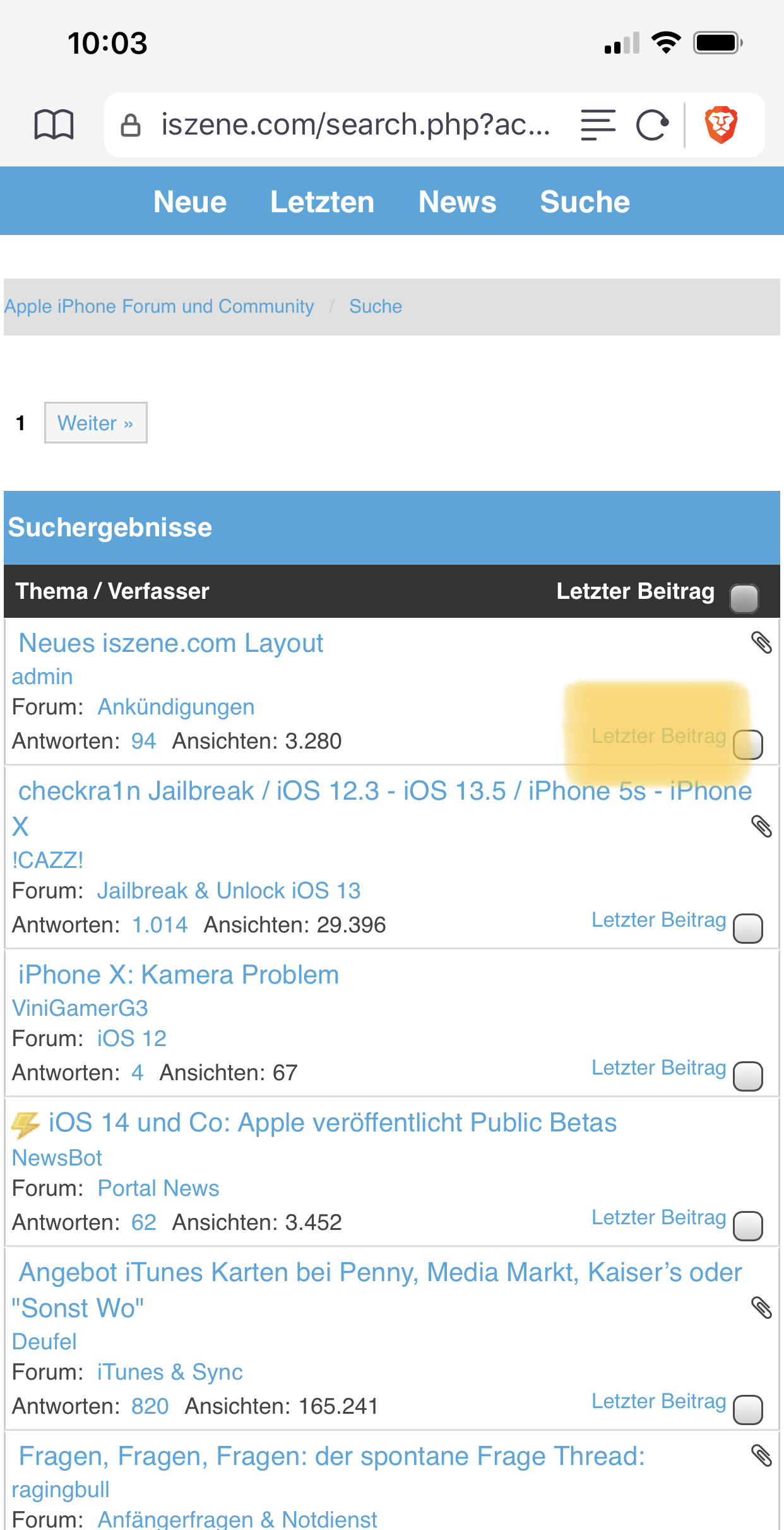 Frage: am iPhone (App) gibt mir "letzte" alle Threads, neue, ungelesene und alte.