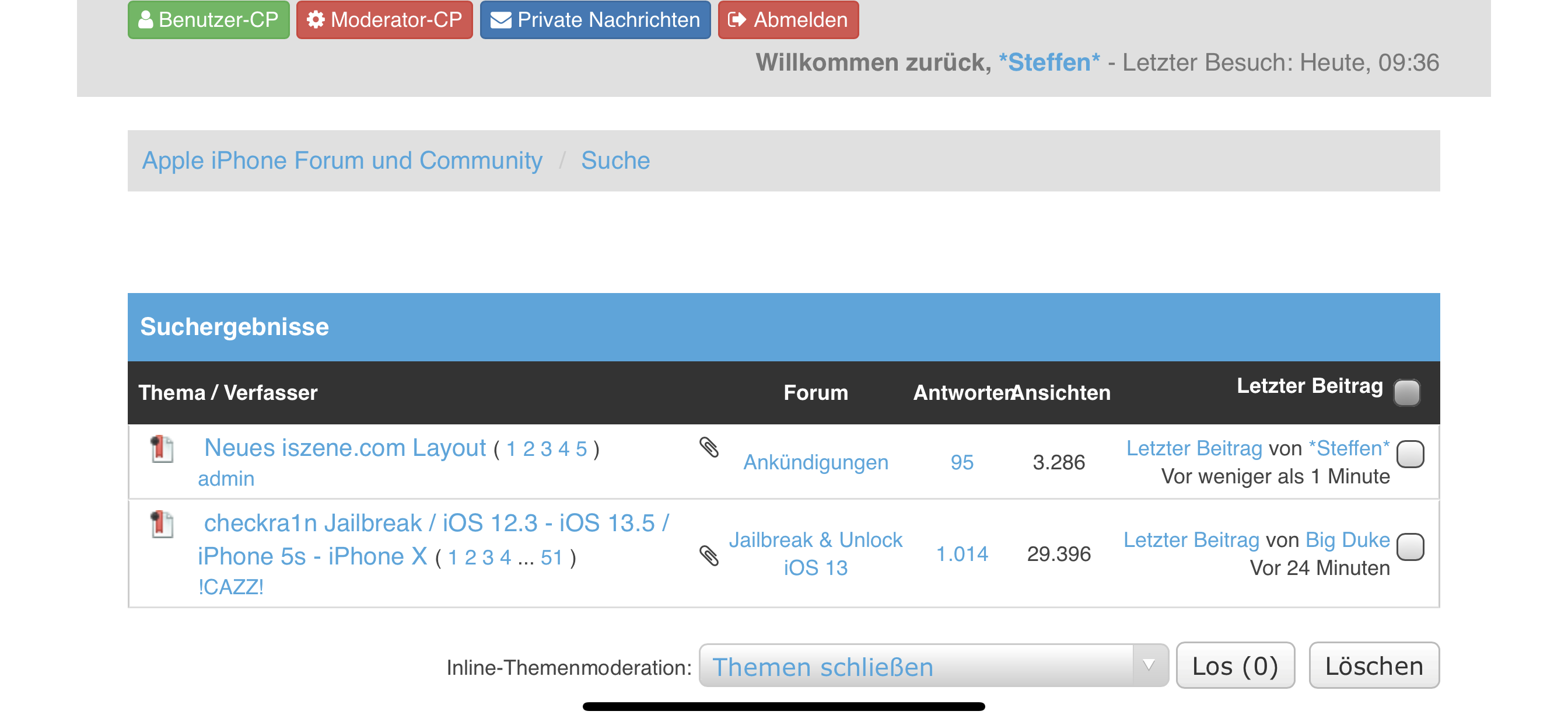 Frage: am iPhone (App) gibt mir "letzte" alle Threads, neue, ungelesene und alte.