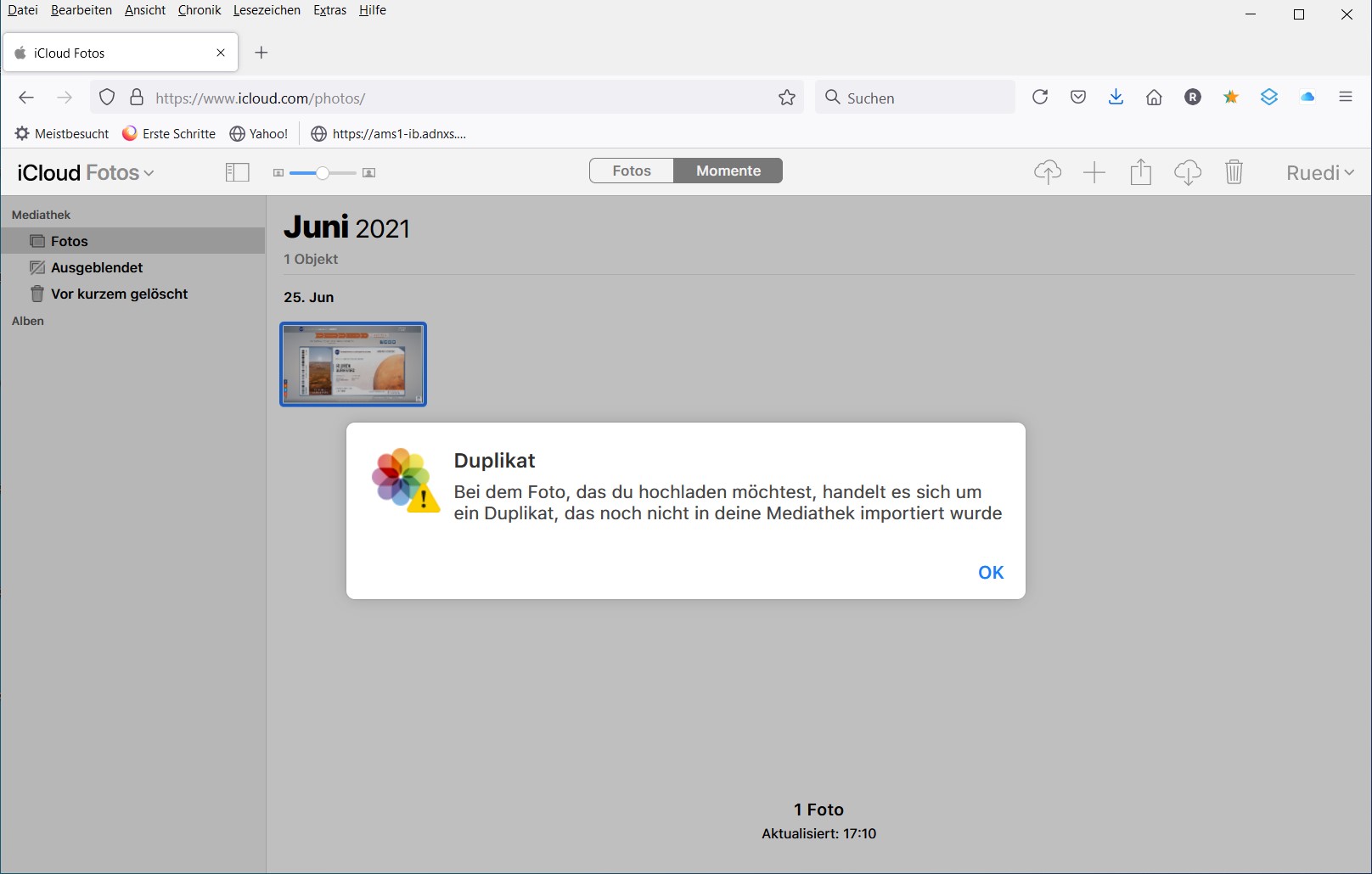 Bei dem Foto, dass du hochladen möchtest, handelt es sich um ein Duplikat, dass
