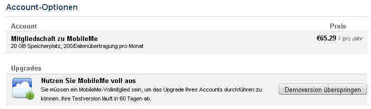 Im Auktionshaus eures Vertrauens können die .mac bzw. jetz MobileME Lizensen günstiger erworben werden. Habe zu .mac Zeiten einige Euros dadurch einsparen können.