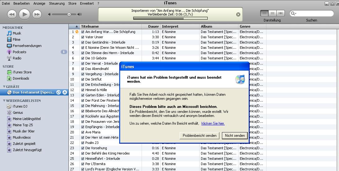 EDIT: Auch wenn man iTunes nur startet, und wirklich garnix anklickt etc. stürzt es ab.