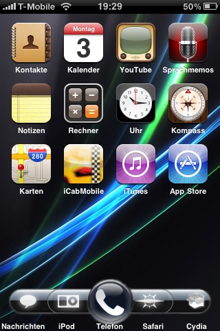 Das erste wie bekommt man die Uhr, das Wetter und die Dockicons auf dem Homescreen?
