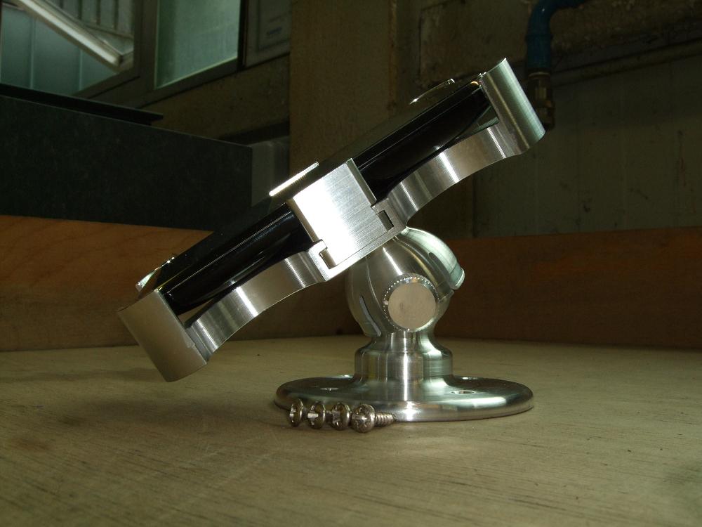 Den Halter kann man dann auch überall hinmachen. Ob mit 4 Schrauben auf den Tisch oder an die Wand schrauben... oder einfach ins Auto mit doppelseitigem Klebeband kleben.