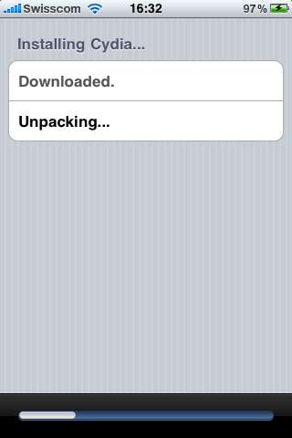 3. wiederversuch den Cydia Installer auszuführen, diesmal läd er nur noch