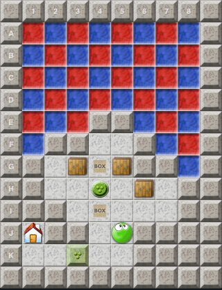 Sokoban kennt nur Kisten die auf vorgegebene Zielfelder geschoben werden müssen, bevor man auf's Zielfeld gehen darf.