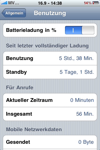 Ja man, aber wie ich sehe hast du nur 56 min. telefoniert und das war's. Habe aber Internet benutzt mit über 100 MB und Ipod und und und. Standby mit 5 tagen ist locker zu schaffen.