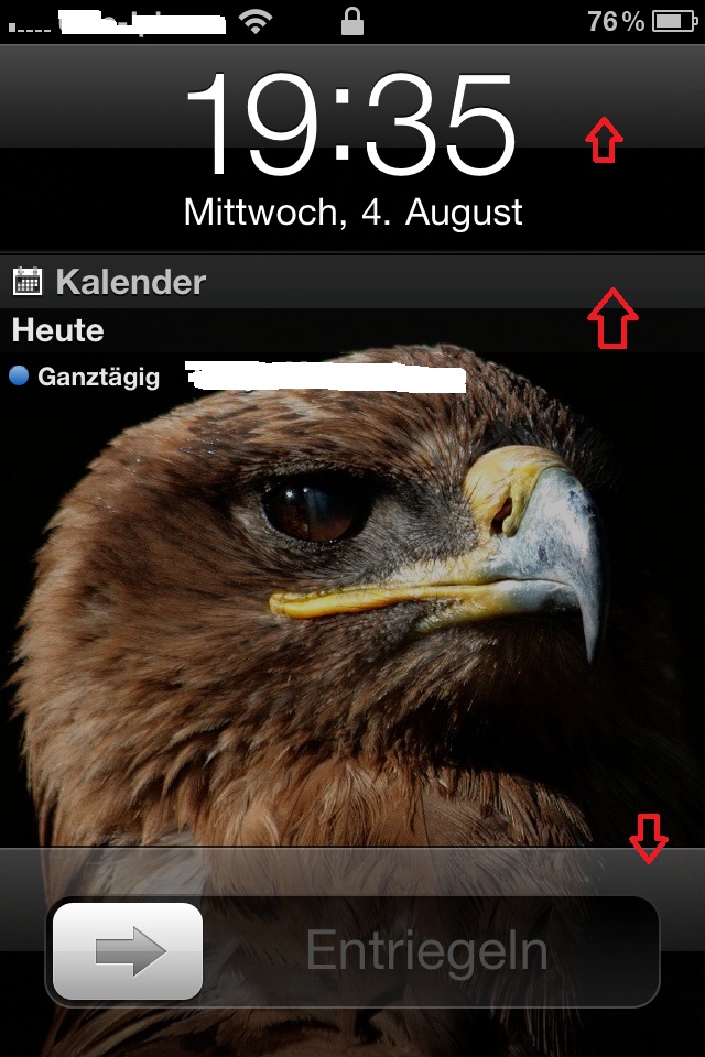 Wenn die Termine vom Kalender auf dem Lockscreen angezeigt wird steht ja als Überschrift "Kalender" da, dieser Text ist in einem grauen Balken der ganz über den Bildschirm geht.